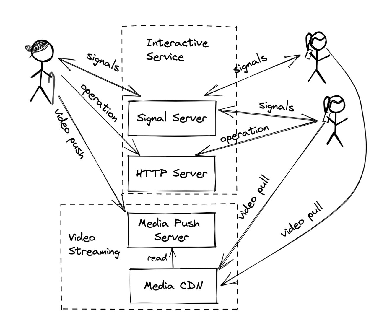 At first, I have to define the “Interactive Service”. Commonly, people always split the live streaming platform into two parts: “Video Steaming” and “Interactive Service”.