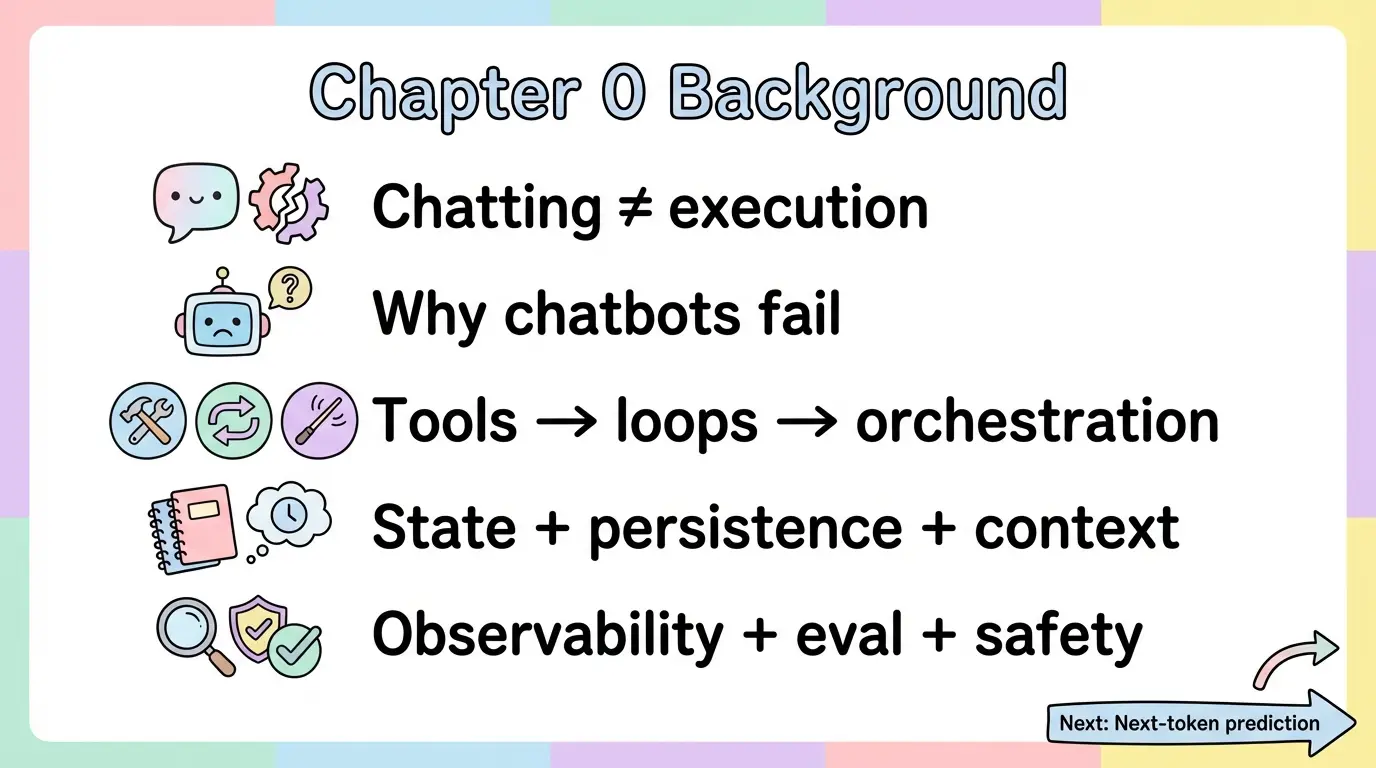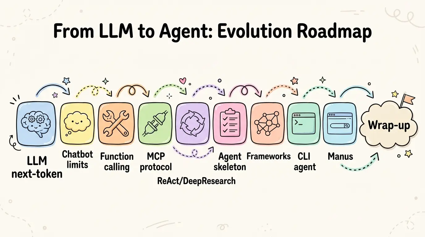 近两年,LLM 的“能对话”已被验证,但把它变成“能完成复杂任务的执行系统”仍是工程难题。本文试图从模型原理出发,解释 Chatbot 的结构性局限,并梳理从 Tool Calling、MCP 到 Agent 框架与运行时的演化脉络,最终落到工程实践的关键能力:状态、持久化、上下文工程、可观测与可控执行。