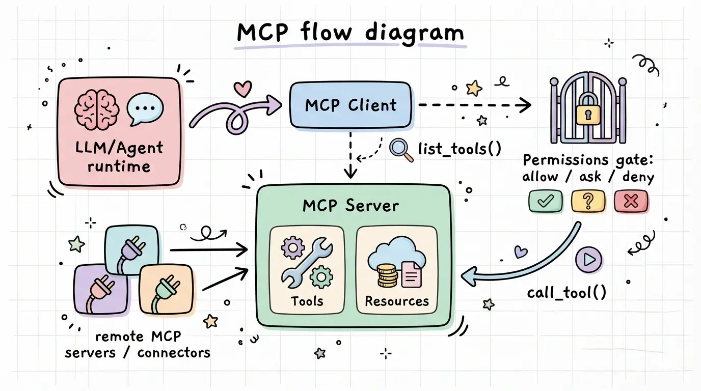 MCP(Model Context Protocol)旨在标准化“模型如何连接外部工具与资源”。MCP server 对外暴露可调用工具(含 schema),并返回结构化结果;在 OpenAI 平台中,开发者可通过 remote MCP servers 或 OpenAI 维护的 connectors 赋予模型新的能力。([OpenAI Developers][3])