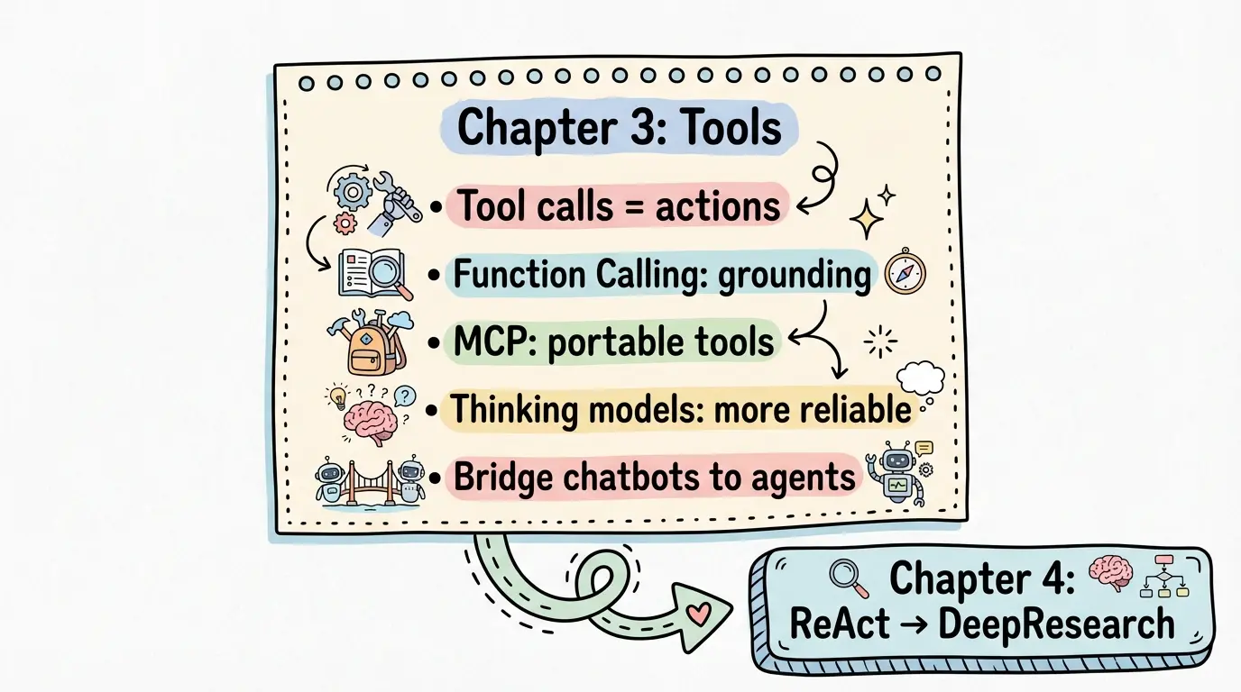 当这三件事有了答案,Tool Calling / MCP / ReAct / DeepResearch 才会从“概念名词”变成“系统能力”;否则,Agent 只是在更大的上下文里,讲出更像样的故事。