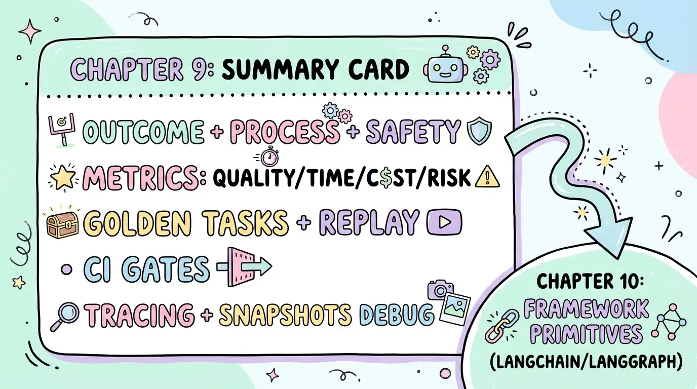 前面几章讨论了 Agent 的运行时骨架:工具、循环、状态、持久化与上下文。把这些能力拼起来,确实能“跑起来”;但在真实生产里更难的是第二步:如何证明它变好了、出了问题如何复现、上线后如何监控与止血。这就落到两个问题: