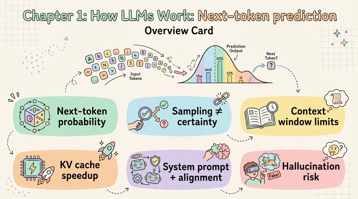 大语言模型的核心是 next-token prediction:给定上下文 token 序列,输出下一个 token 的概率分布,并以此自回归生成后续文本。该机制决定了两个关键事实: